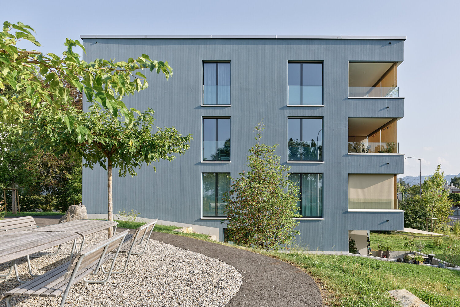 In einem ruhigen Wohnquartier entsteht ein städtebaulich überzeugendes Projekt mit insgesamt zehn modernen 3.5- bis 5.5-Zimmer-Eigentumswohnungen und einer gemeinsamen Einstellhalle mit 14 Parkplätzen.